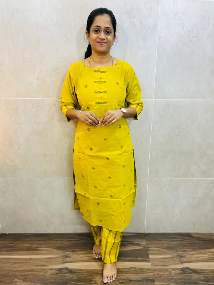 Premium handloom cotton top(cotton lining) with allover buttas paired with handloom cotton bottom(straight cut)