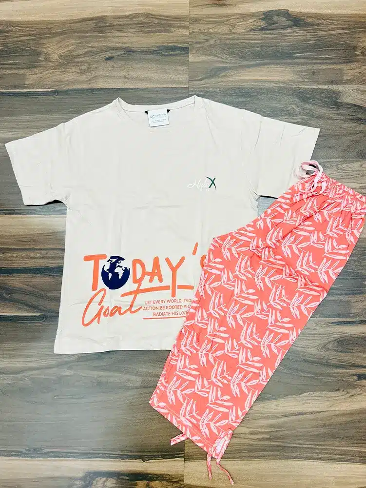 Premium hosiery cotton T-shirt with printed hosiery Capri pant