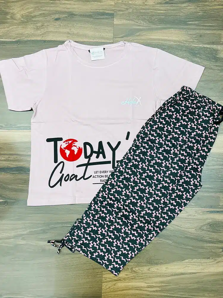Premium hosiery cotton T-shirt with printed hosiery Capri pant