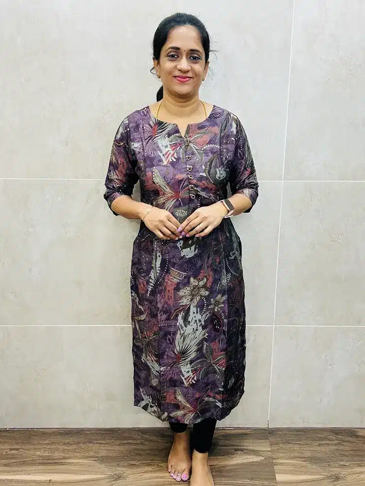 Purple – Premium muslin silk top (crepe lining) with fancy buttons on yoke (straight cut)