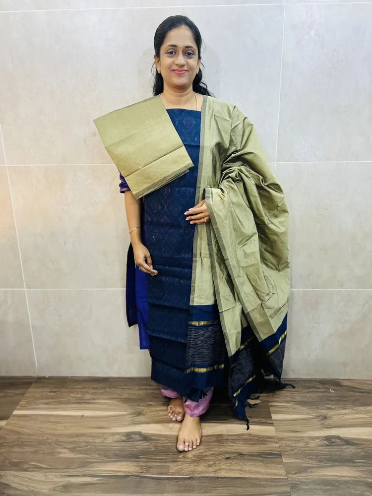 Premium Pochampally handloom silk cotton top paired with silk cotton dupatta and silk bottom (Free size)