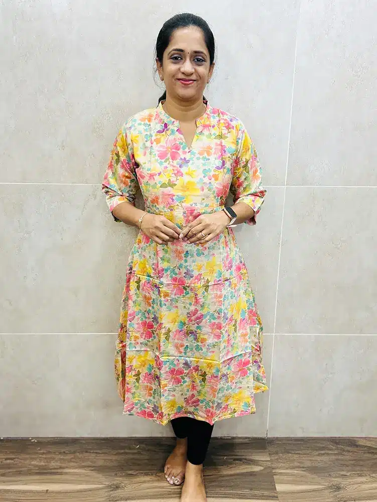 (Pattern-2)Premium printed muslin silk top with cotton lining (Anarkali pattern)