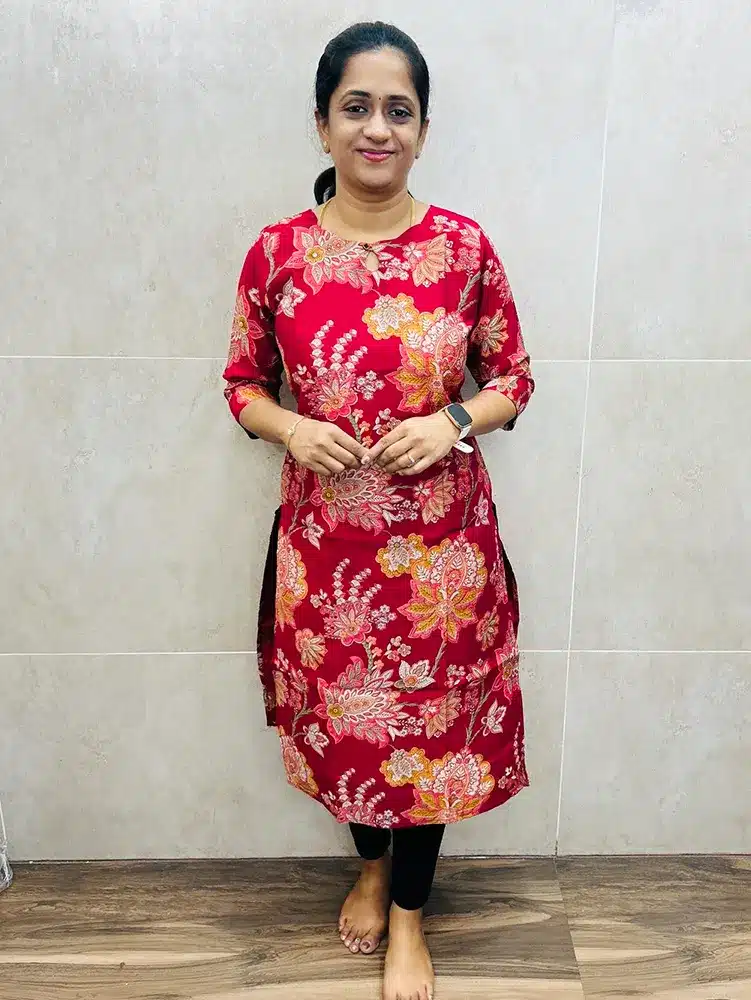 Premium printed soft silk cotton top (cotton lining) with fancy button on yoke (straight cut)