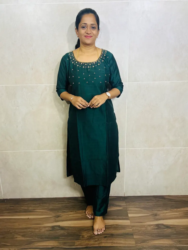 Premium semi raw silk top(cotton lining)with handworked yoke paired with semi raw silk bottom(straight cut)