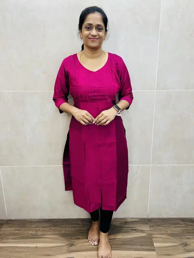 (Dark Rani pink)Premium semi raw silk top(cotton lining)with pintuck and potli works(straight cut)