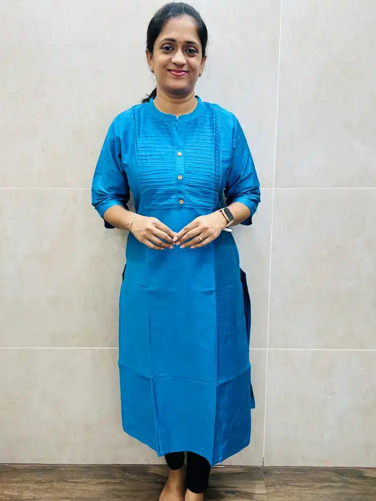 Premium silk cotton top(cotton lining)with fancy button and pintuck work on yoke(straight cut)