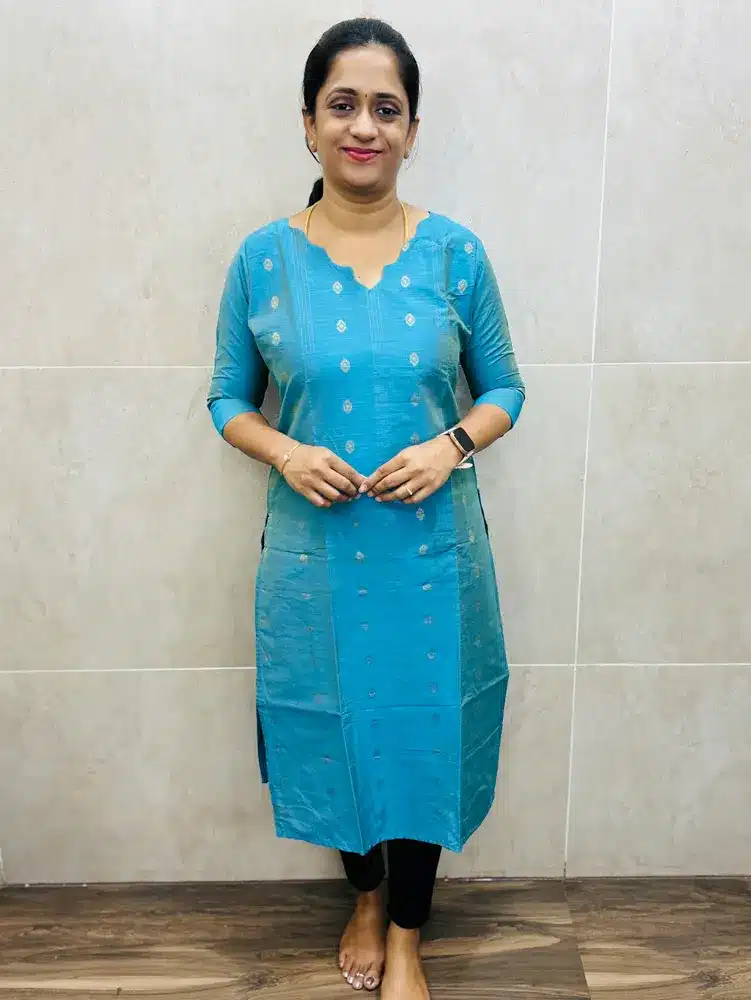(Anandha Blue)Premium silk cotton top(cotton lining)with all over zari weaving buttas(straight cut)