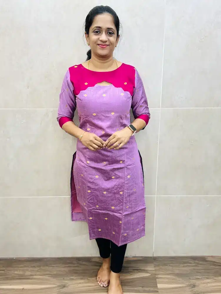 Premium silk cotton top(cotton lining) with allover zari woven buttas and scallop yoke(straight cut)