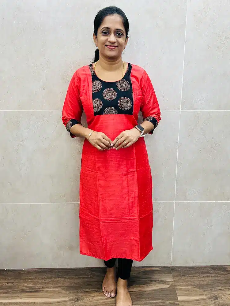 Peach – Premium silk cotton top (cotton lining) with Ajrakh cotton patchwork on yoke and sleeves (straight cut)