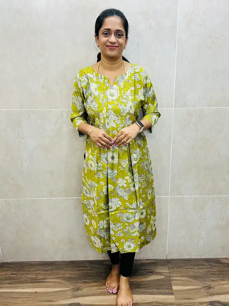 Printed premium silk cotton top (cotton lining) with pintuck work on yoke (straight cut)