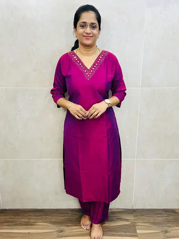 (Majentha pink) Premium silk cotton top (cotton lining) with handworked yoke paired with silk cotton bottom (straight cut)