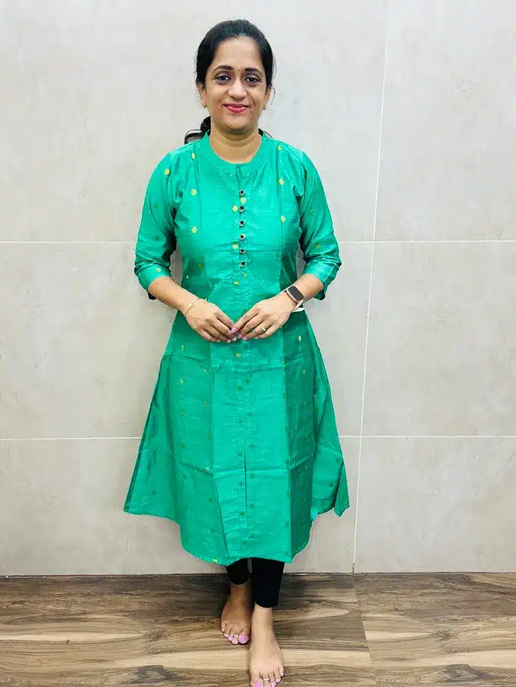 Premium silk cotton top paired with zari weaved silk cotton overcoat with fancy buttons(Aline pattern)