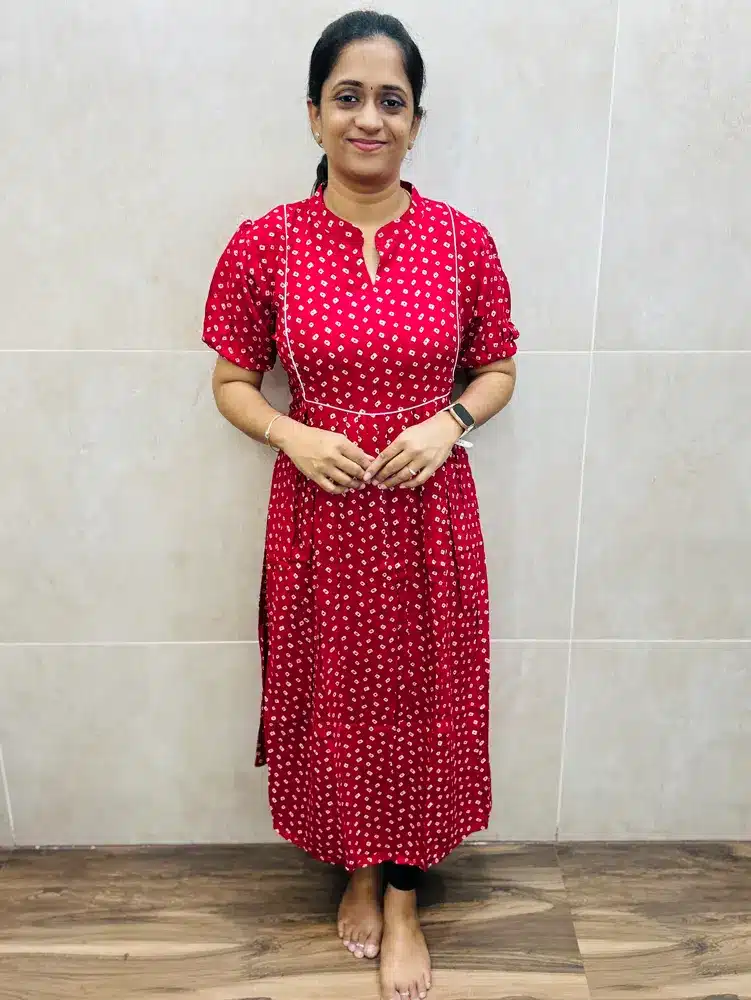 (Rani pink)Premium soft rayon top with allover printed(Long dress kurti)