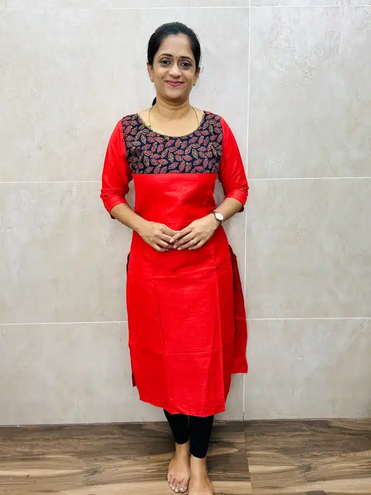 Premium soft silk cotton top(cotton lining) with handworked ajrakh patchwork ok yoke(straight cut)