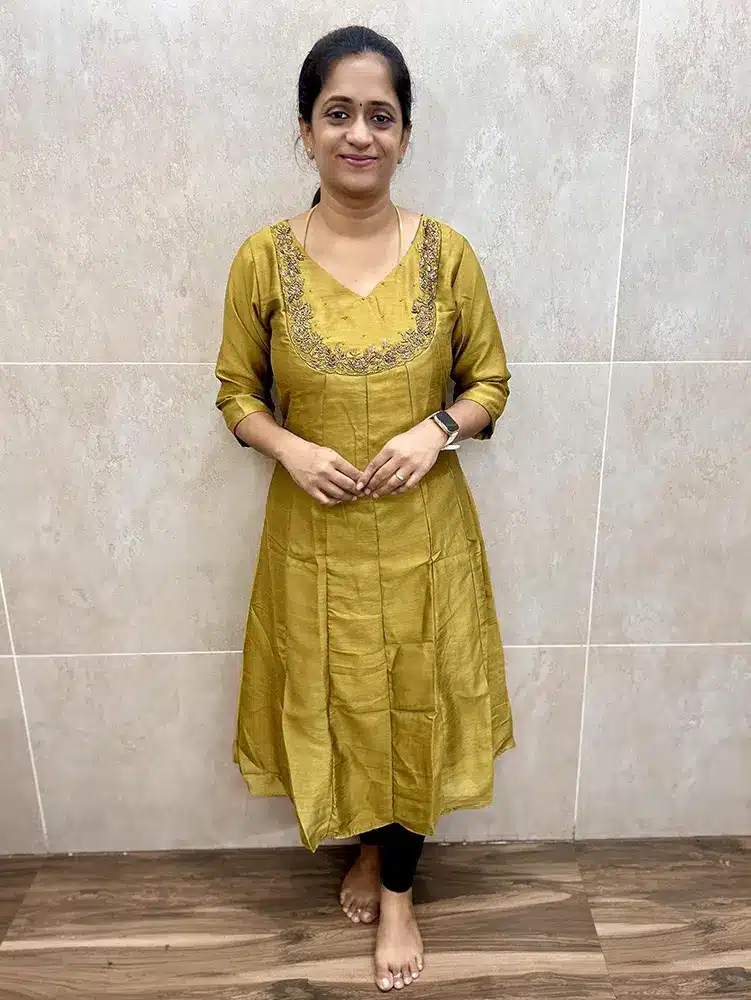Golden beige – Premium soft silk top (full crepe lining) with handworked yoke (Panel cut Anarkali)