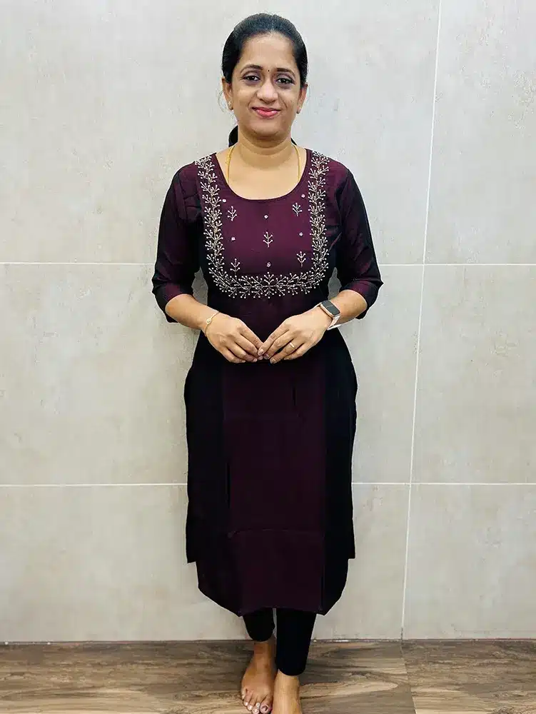 Maroon – Premium soft silk top (crepe lining) with pearl and antique bead handwork on yoke (straight cut)