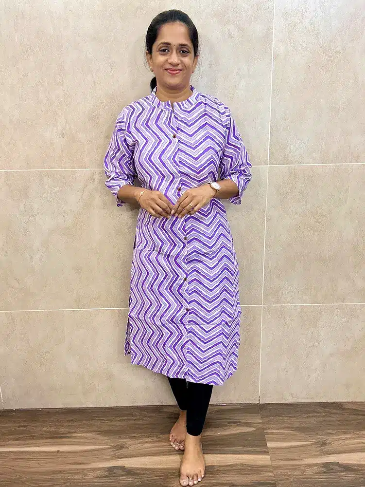 Printed cotton top (cotton lining) with all over fancy buttons (straight cut)