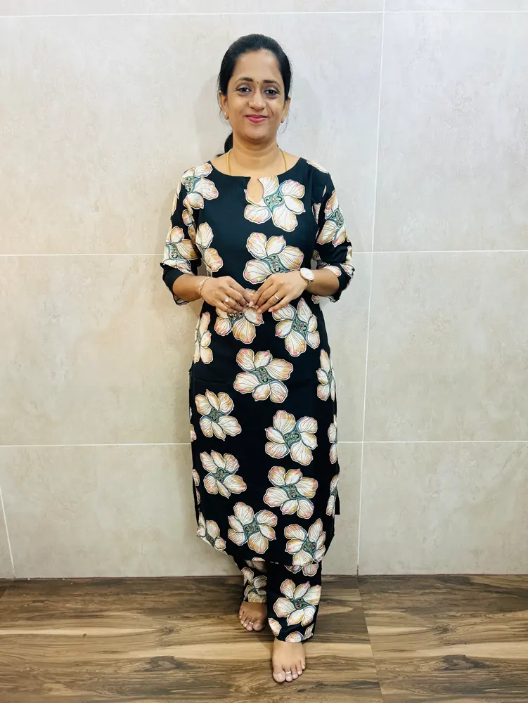 (Black)Printed cotton top(cotton lining) paired with cotton bottom(semi palazzo)