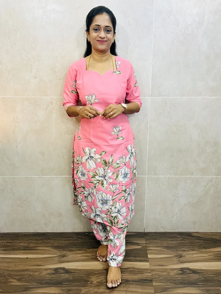 Printed cotton top (cotton lining) paired with printed cotton bottom (free size)