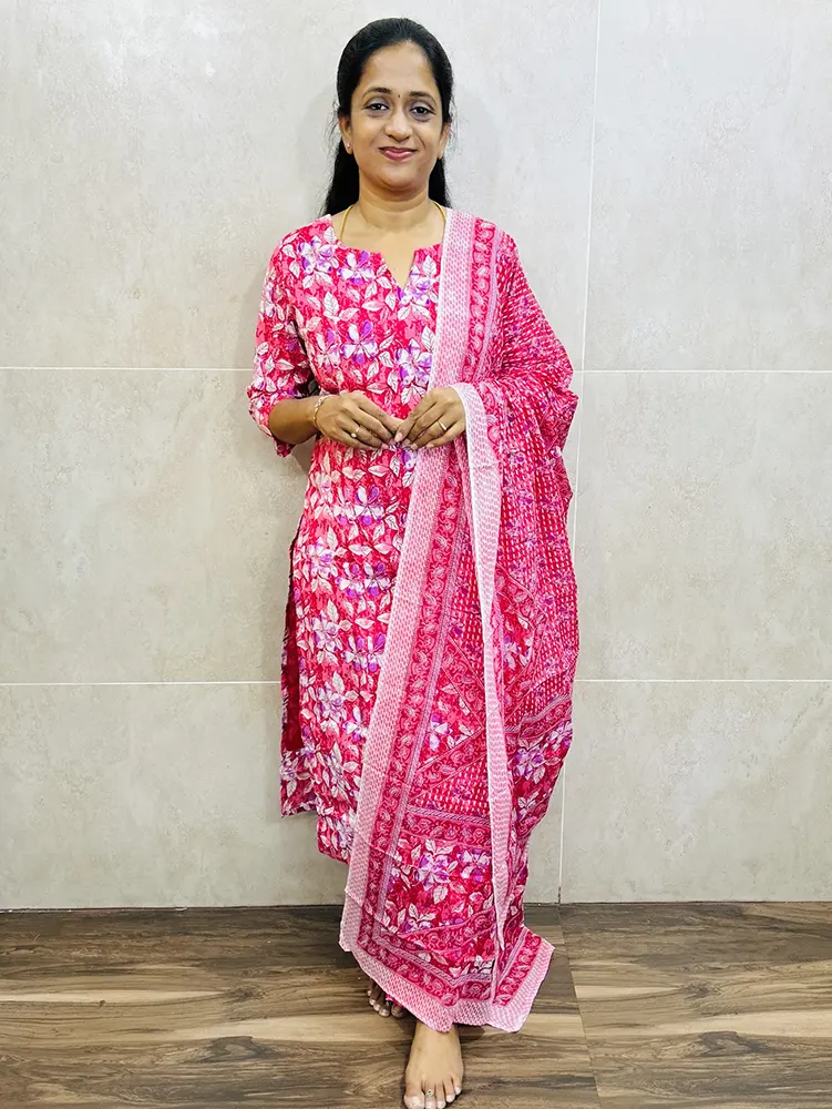 Printed cotton top(cotton lining) paired with cotton dupatta and cotton bottom(straight cut)