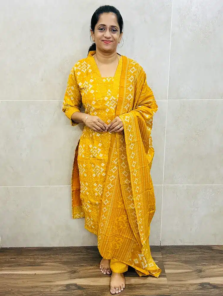 Printed cotton top (cotton lining) paired with printed cotton dupatta and cotton bottom (straight cut)