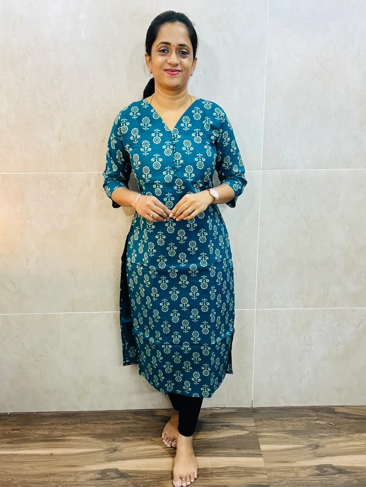 Printed pure cotton top(cotton lining) with potli work on yoke(straight cut)