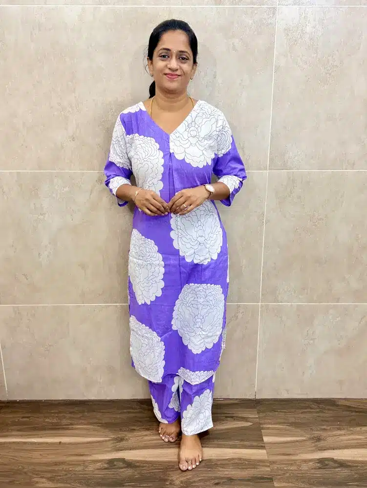 Printed cotton top paired with printed cotton bottom (semi palazzo)