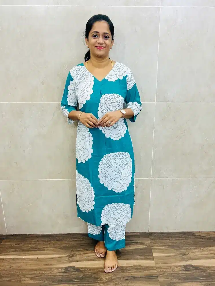 Printed cotton top paired with printed cotton bottom (semi palazzo)