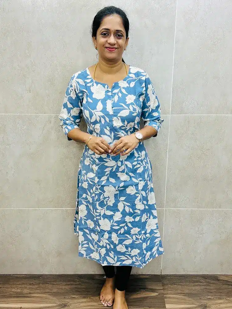 Printed cotton top with Potli work in yoke (Panel cut Aline)