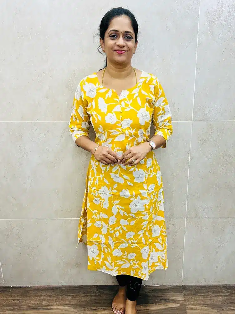Printed cotton top with Potli work in yoke (Panel cut Aline)