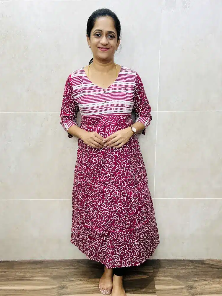 Printed cotton top(cotton lining)with fancy buttons on yoke(Anarkali pattern)