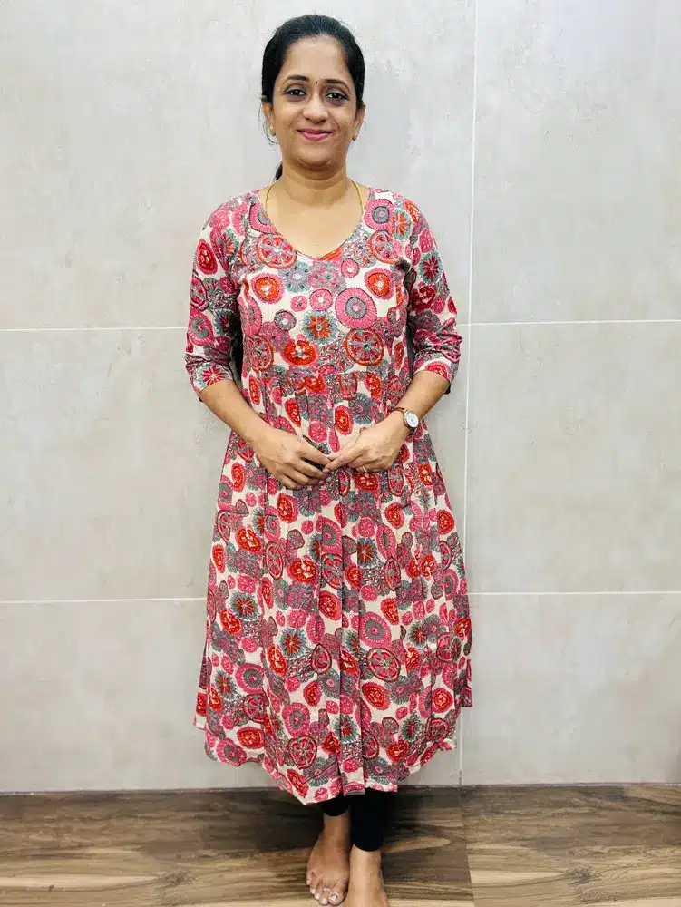 Printed cotton top(cotton lining)with handworked yoke and pleated flare(Aline Gown pattern)