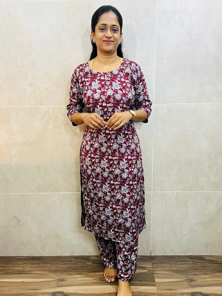 Printed crepe top (crepe lining) paired with printed crepe bottom (straight cut)