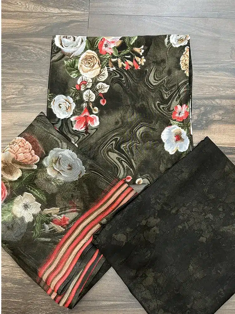 Printed crepe top with printed chiffon dupatta and printed crepe bottom