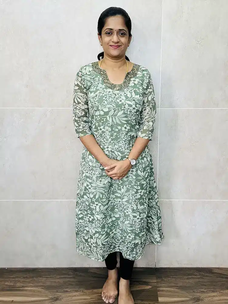 Printed Georgette top with heavy embroidered yoke (Aline pattern)