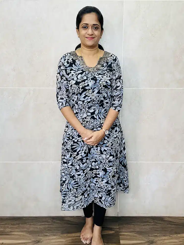 Printed Georgette top with heavy embroidered yoke (Aline pattern)