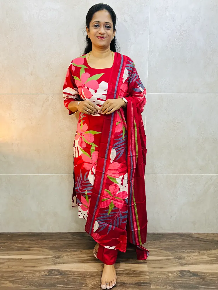 Printed Jaipur cotton top (cotton lining) paired with printed cotton dupatta and cotton bottom (straight cut)