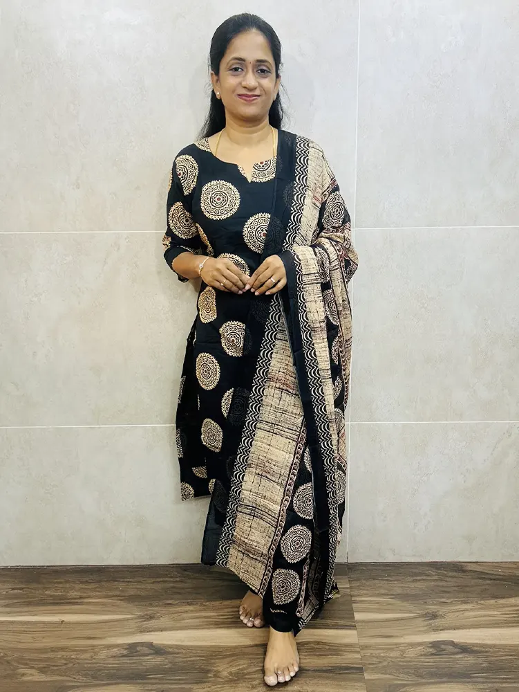 Printed Jaipur cotton top (cotton lining) paired with cotton dupatta and cotton bottom (Straight cut)