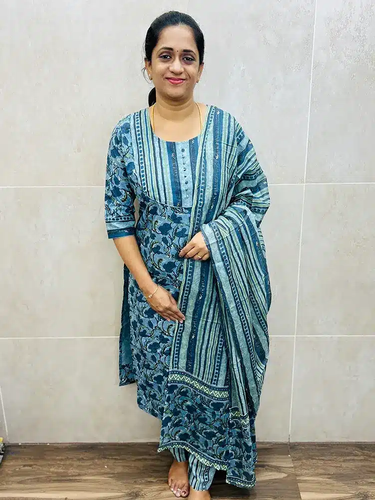 Printed Jaipur cotton top(cotton lining) paired with printed cotton dupatta and cotton bottom-1side pocket