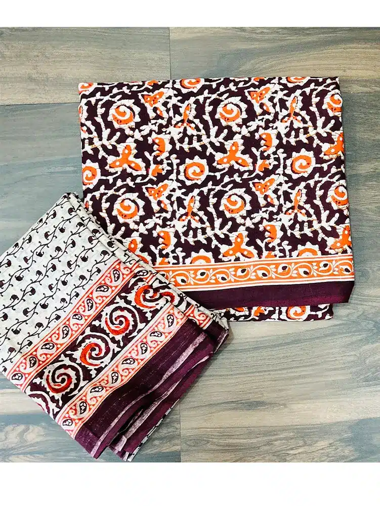 Printed jaipur cotton top with cotton dupatta and cotton bottom