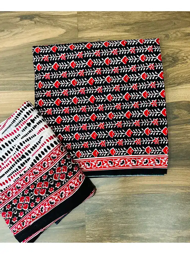Printed jaipur cotton top with cotton dupatta and cotton bottom
