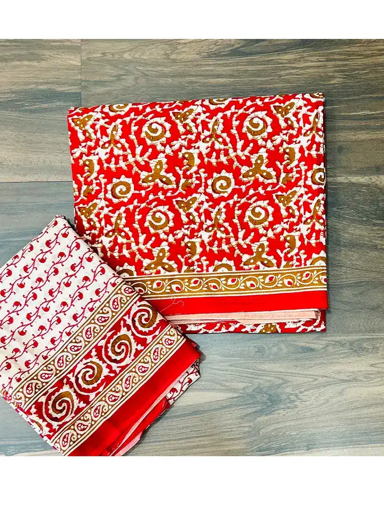 Printed jaipur cotton top with cotton dupatta and cotton bottom