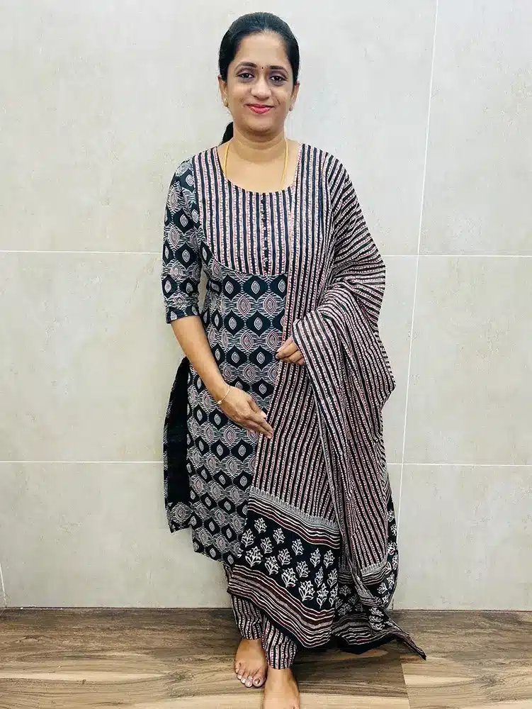 Printed Jaipur cotton top(cotton lining) paired with printed cotton dupatta and cotton bottom-1side pocket