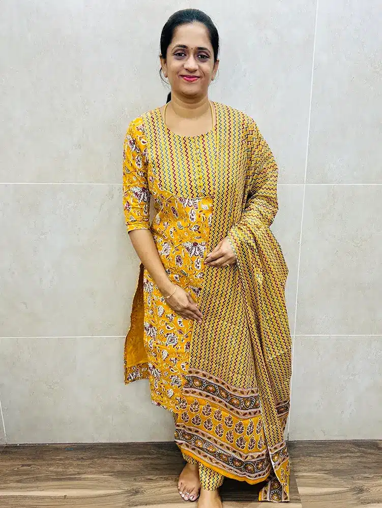 Printed Jaipur cotton top(cotton lining) paired with printed cotton dupatta and cotton bottom-1side pocket