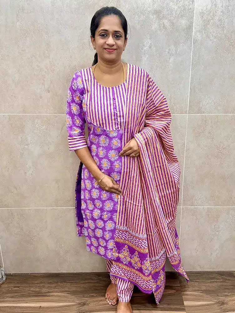 (Top and dupatta only)Printed Jaipur cotton top(cotton lining) paired with printed cotton dupatta and cotton bottom-1side pocket