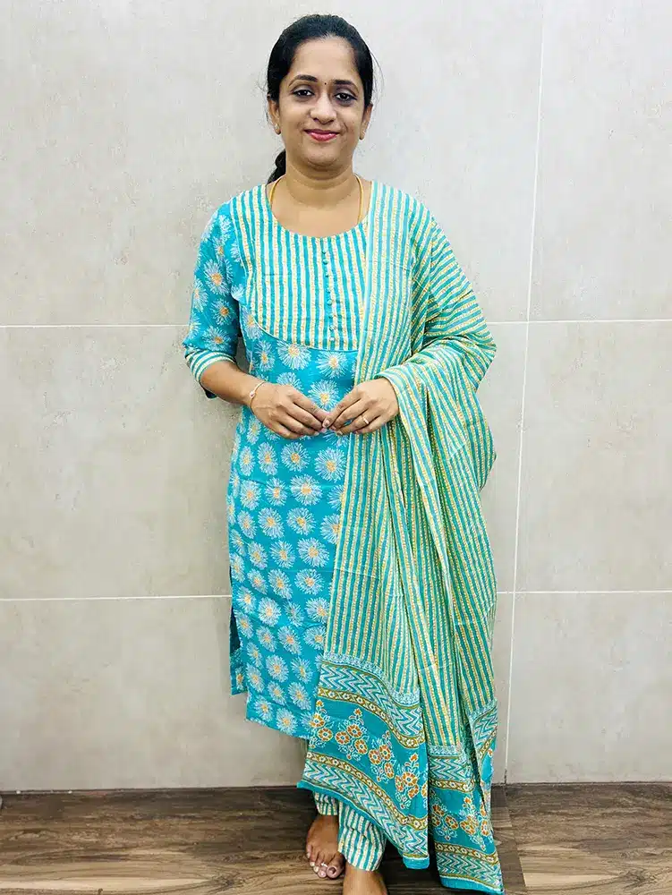 (Top and dupatta only)Printed Jaipur cotton top(cotton lining) paired with printed cotton dupatta and cotton bottom-1side pocket