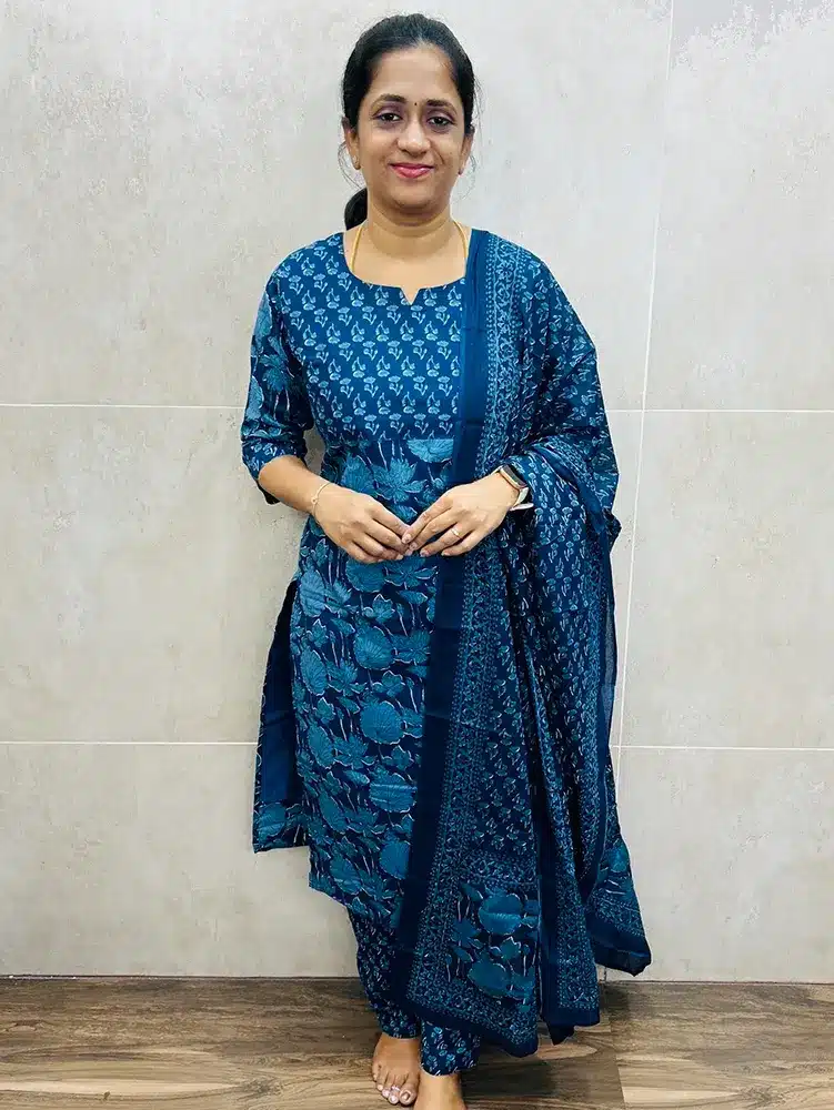 (Top and dupatta only)Printed Jaipur cotton top (cotton lining) paired with printed cotton dupatta and cotton bottom-1 side pocket