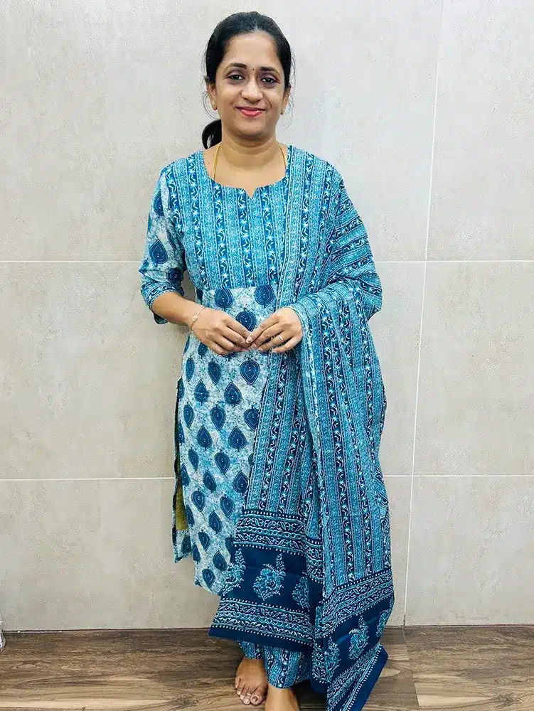 (Top and dupatta only)Printed Jaipur cotton top (cotton lining) paired with printed cotton dupatta and cotton bottom-1 side pocket