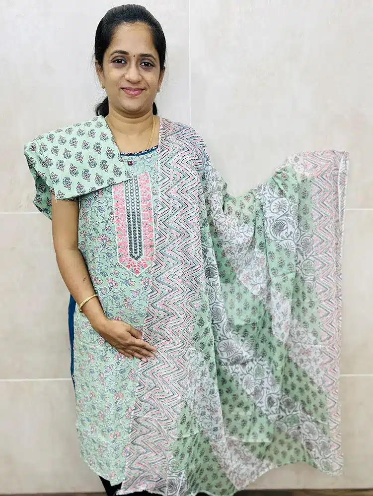 Printed Jaipur cotton top with cotton dupatta and printed cotton bottom