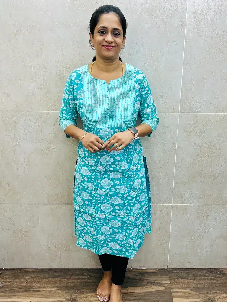 Printed Jaipur cotton top (cotton lining) with Potli work on yoke (straight cut)